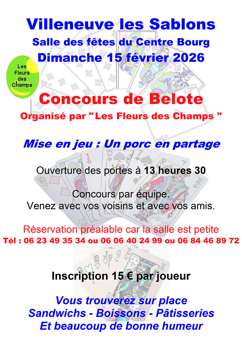 Dimanche 15 février 2026 – Concours de belote – Villeneuve-les-Sablons